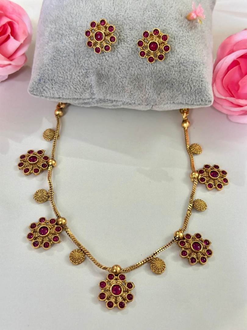 Flower Temple Lakshmi Necklace Red